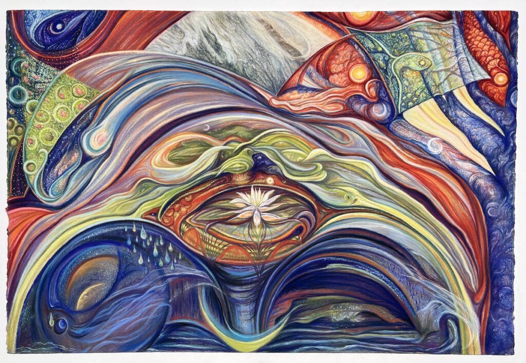 According to a release from AIR, “Anne Hughes employs a rich color palette of soft pastels to create thought-provoking semi-abstract paintings. Hughes’ imagery is activated by her intuitive curiosity and sincere reverence for wonder and the environment, as well as her respect for philosophical and scientific questioning. Unexpected connections flow together in these graceful compositions, stimulating the mind and delighting the senses.