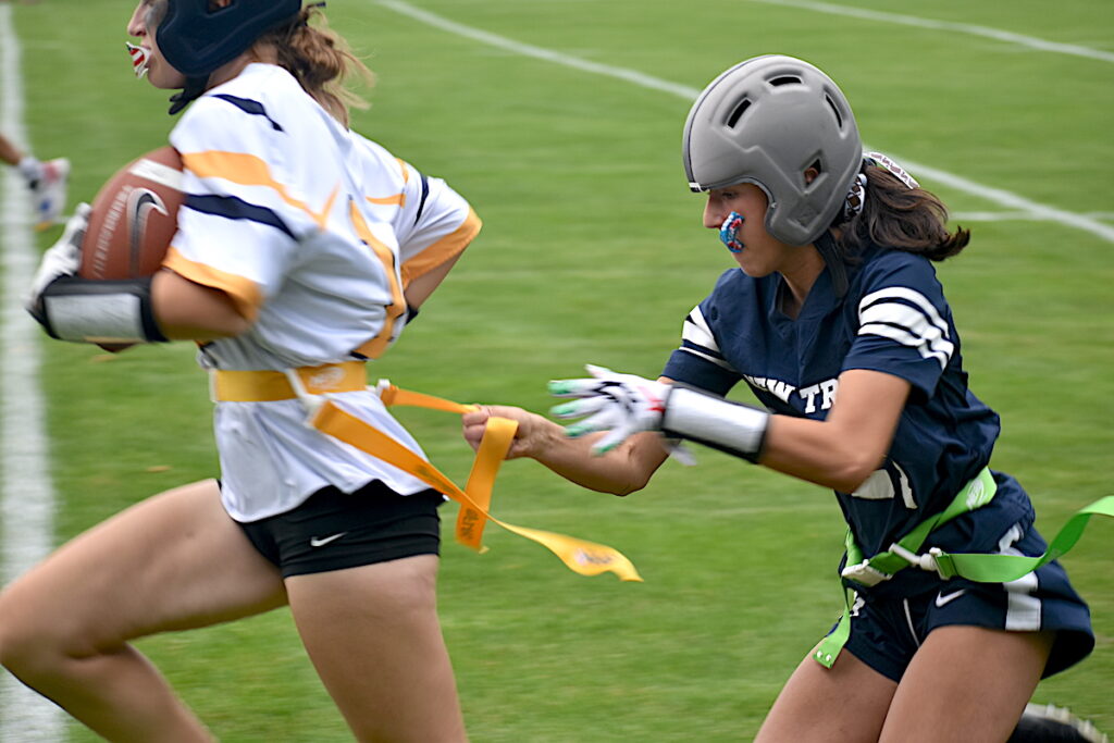 Both Hales and Ellis — like thousands of girls nationwide — found what they were looking for in girls flag football, a surging sport that made its debut at New Trier High School this school year.