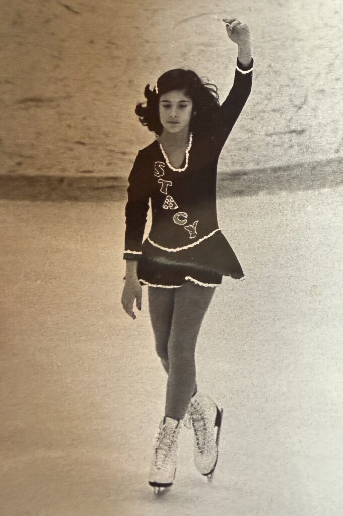 The serendipity began to unfold a bit before then, when another Northbrook competitive skating alumna and friend of Karel’s spotted the jacket while perusing the thrifted clothing at Fisher’s store, which she opened with husband Kevin Weinstein this past November.