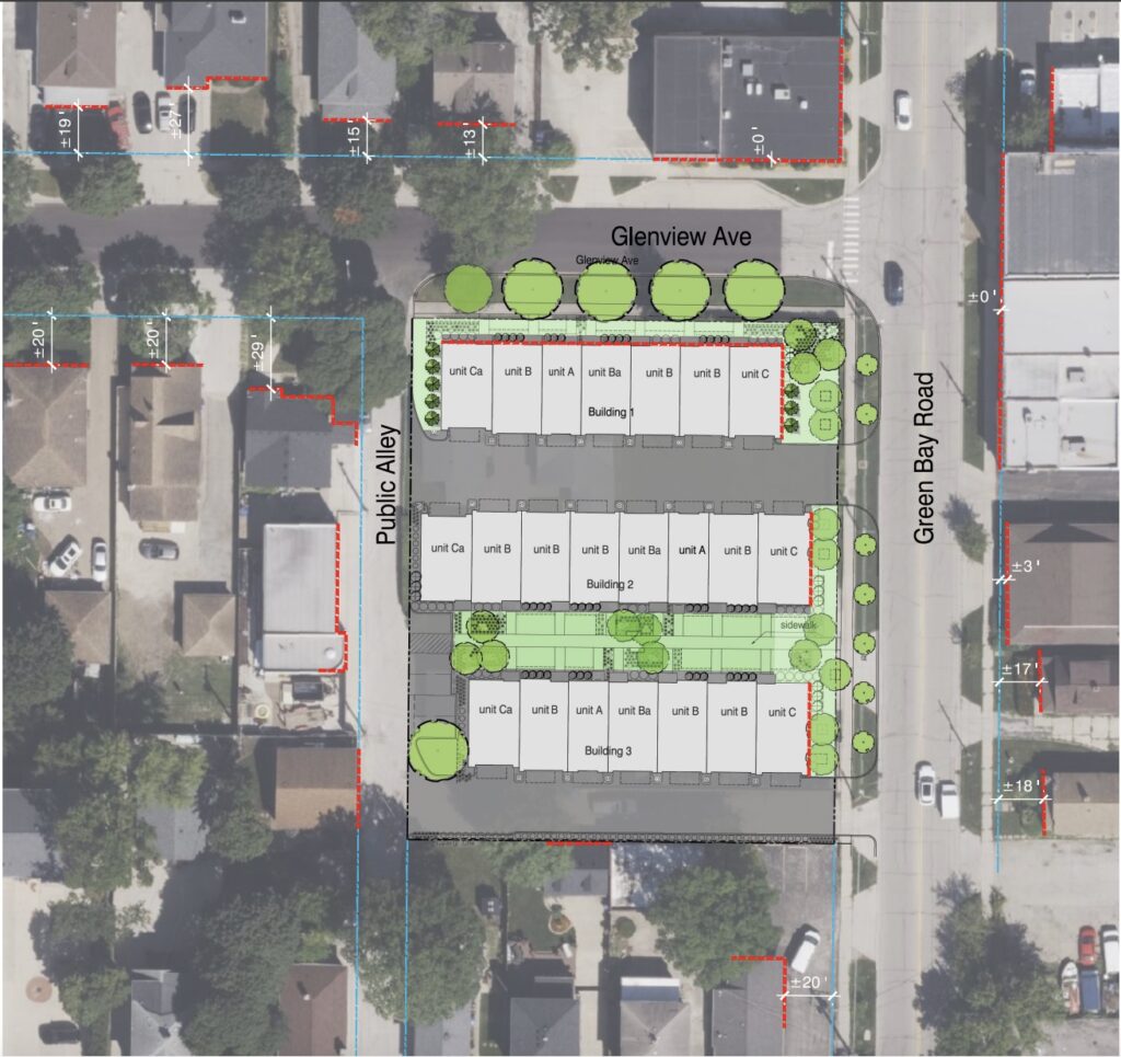 The city’s Plan and Design Commission on May 6 reviewed a proposal for a 22-unit townhome development on three existing sites near the intersection of Green Bay Road and Glenview Avenue.