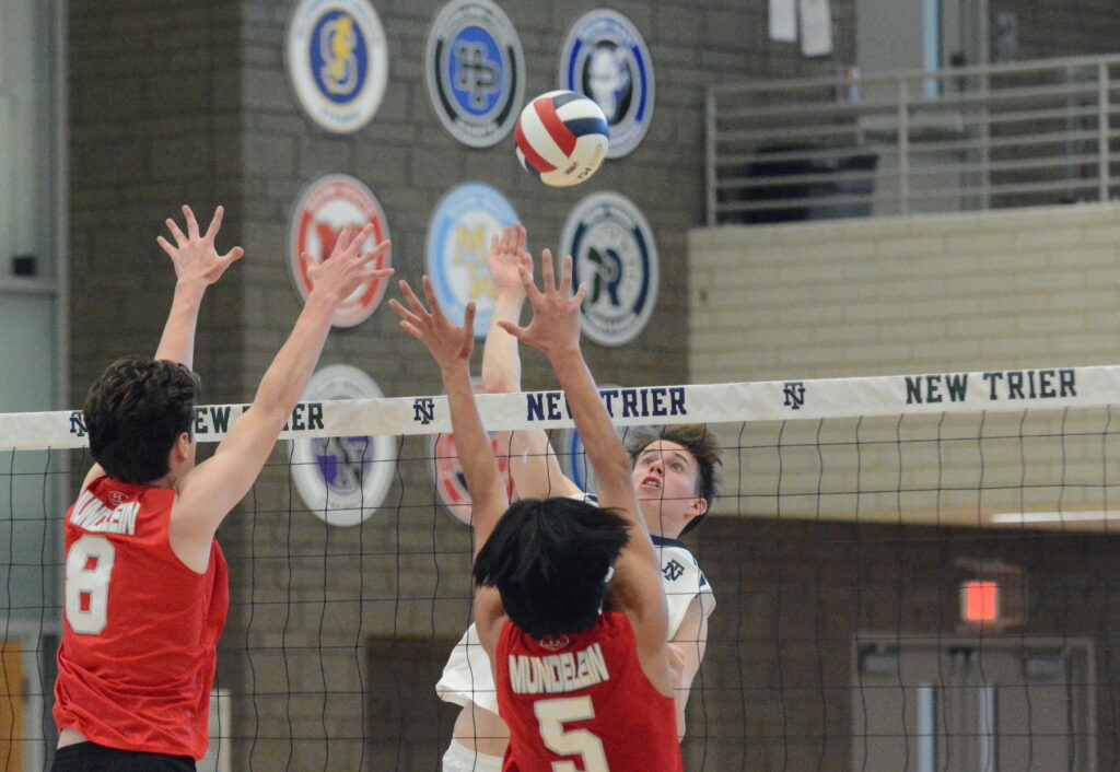 Mundelein offered its response midway through the second set, turning a tie game into a 20-15 advantage. New Trier could not recover, as the Mustangs drew even.