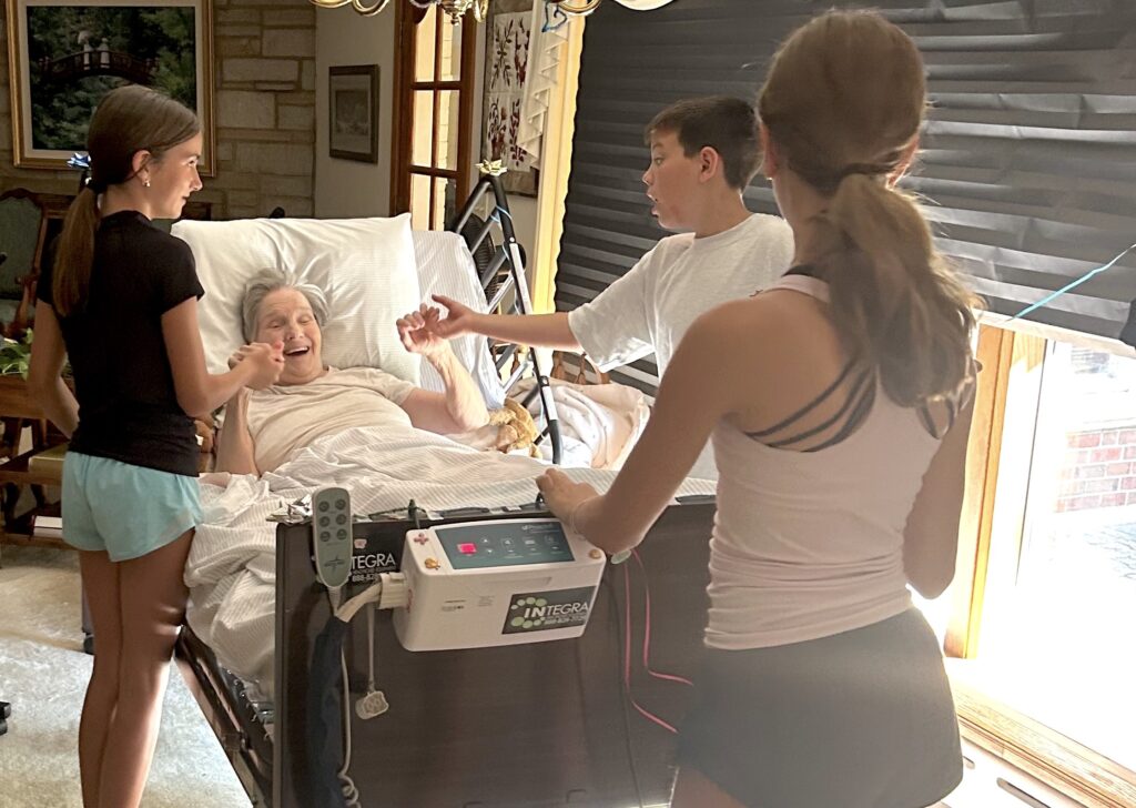 “Me and my friends, after school, would be eager to come over and talk with Leslie and Joe, which were always highlights of our day. Watching Annie and eating chocolate chip cookies made by (Leslie’s caregiver) were some of my fondest memories with her. One day, me and my friends decided to surprise Leslie and Joe by decorating her (hospice) bed. We brought jewels, stickers, confetti, and bedazzled it to bring laughter to them.