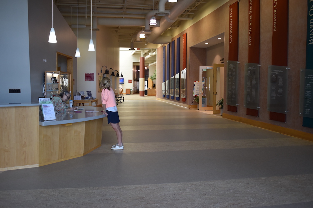 Under the green awning of the North Shore Senior Center entryway stands a sign that reads “Welcome Back,” inviting guests through the main south doors for the first time since January.
