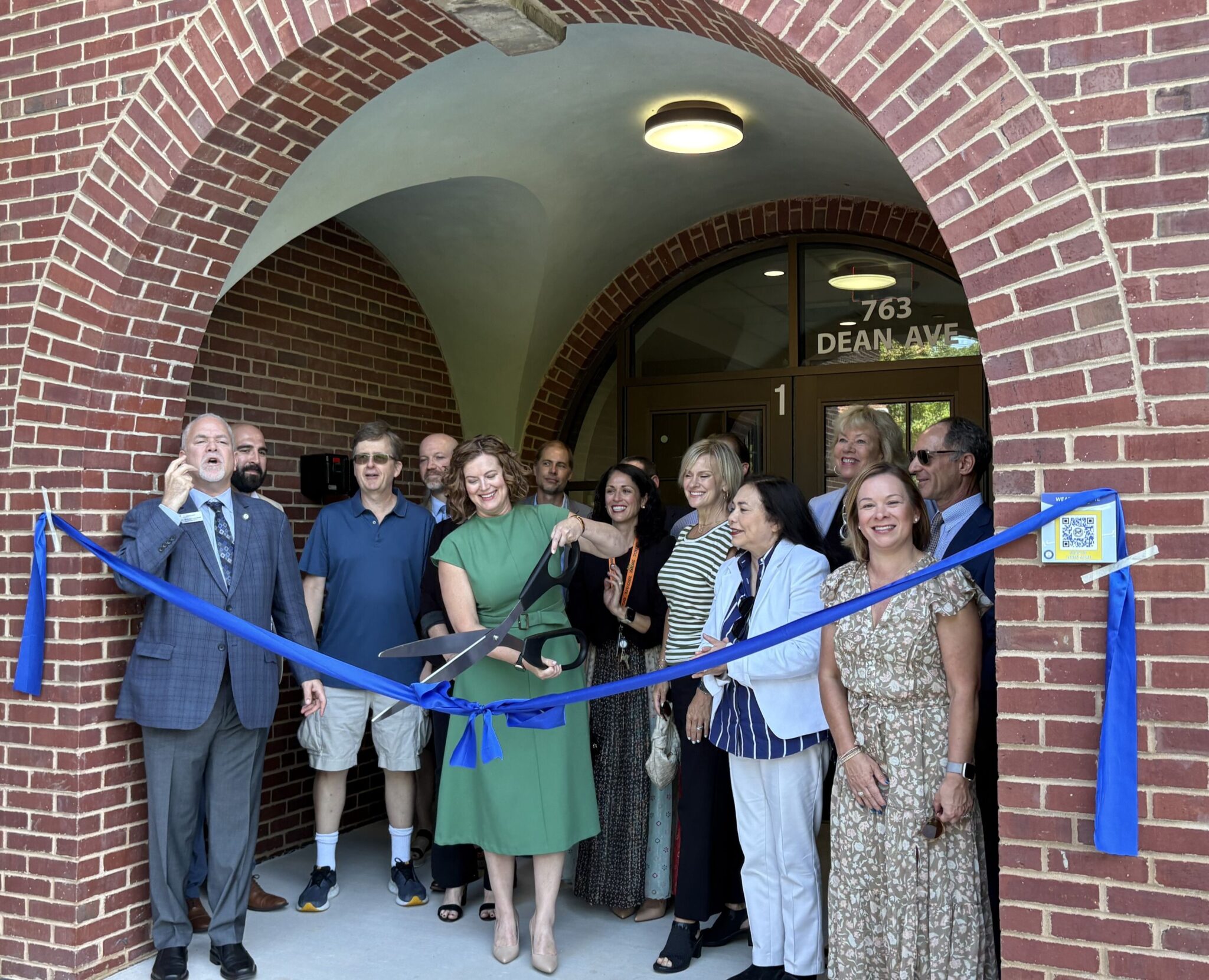 D112 administrators, educators, parents and board of education members gathered outside Ravinia Elementary on Wednesday morning, Aug. 13, to celebrate the completion of construction work that began in 2023 at the more-than-100-year-old school building as part of a larger overhaul of district buildings.