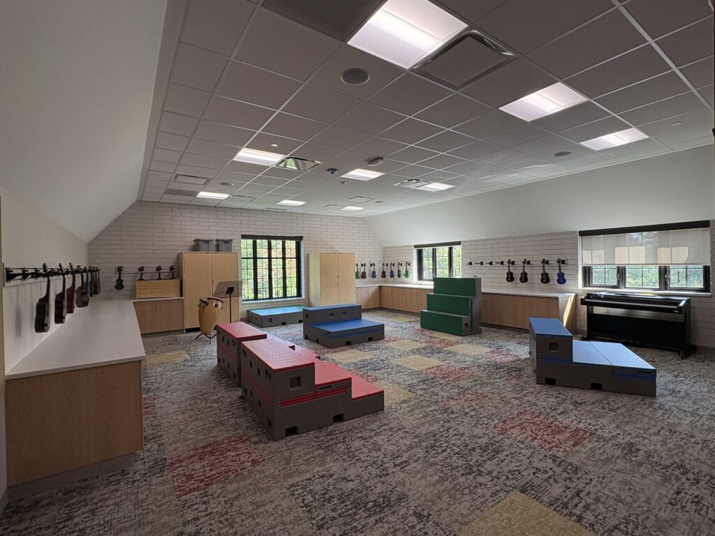 New features in the building also include sound padding in a number of its classrooms, lighting designed to match student’s circadian rhythm, a lunch-service space where food prepared at Edgewood Middle School will be made available for Ravinia students, a courtyard, and an accessible playground.