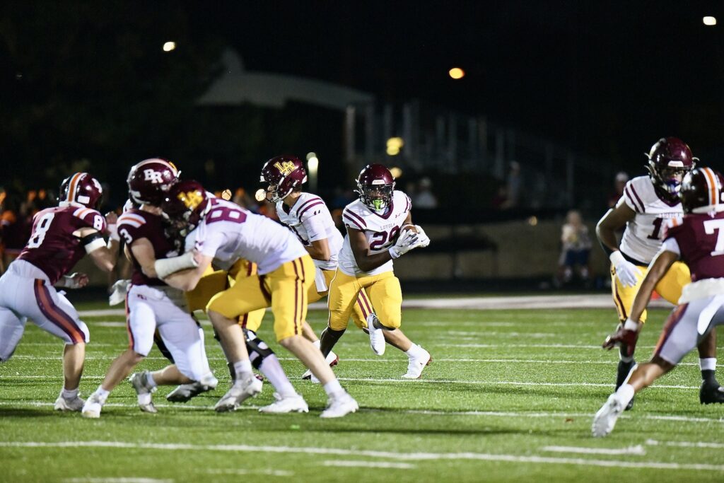 Loyola Academy began Chicago Catholic League Blue Division competition in the unfriendly confines of Brother Rice’s Tom Mitchell Field on Friday night, and the winners of the last three IHSA Class 8A championships suffered a 28-6 loss that ended their winning streak at 13 games.