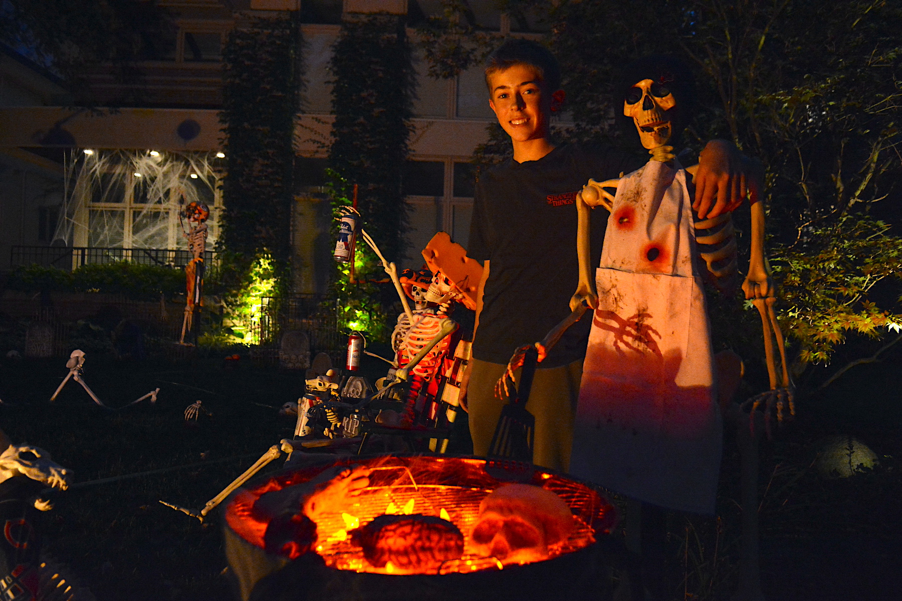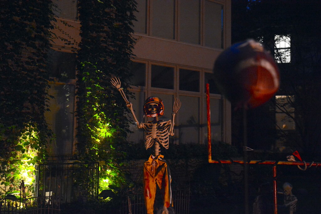The display is courtesy of the Genke family and specifically 13-year-old Nate Genke, who combined his love for football and Halloween into a frighteningly fun front-yard scene.