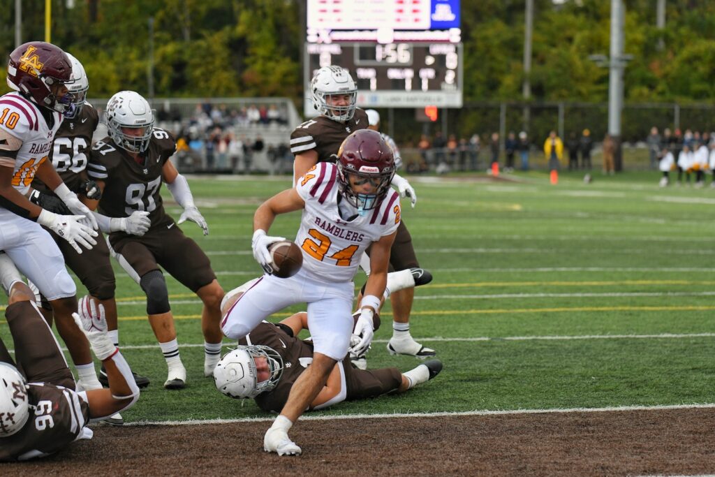 The Ramblers battled back and made it to the Caravan’s 34-yard line with 52 seconds to play when wide receiver Joe Haughey made a diving catch of a 25-yard pass thrown by fellow junior Dom Maloney in a fourth-and-15 situation