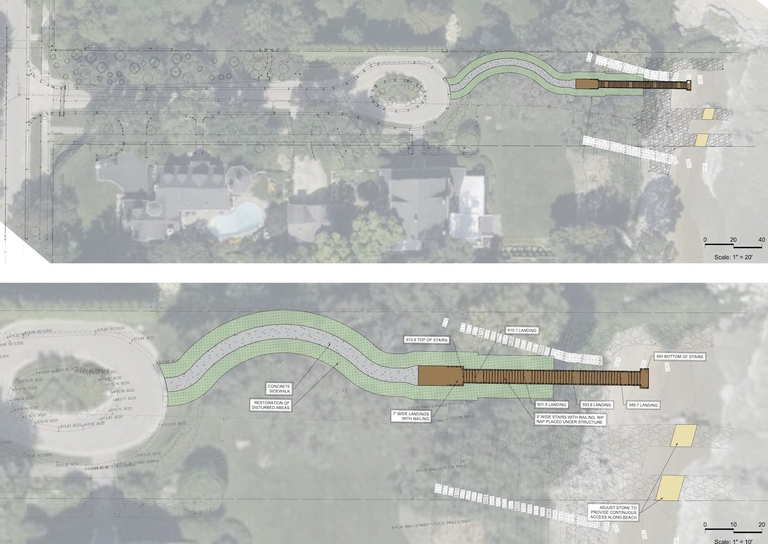 Powers said staff looked at the possibility of creating ADA-compliant access points to the beach, and three concepts were created. He said, however, that the two options that would have given ADA access to the beach proved either prohibitively expensive or in violation of the village’s steep slope ordinance.