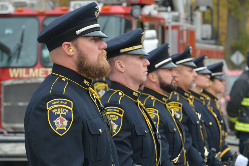 The annual event, which led up to the placement of a wreath at the park’s flagpole, drew local scouts and fourth-graders as well as Village of Wilmette officials and area military veterans.
