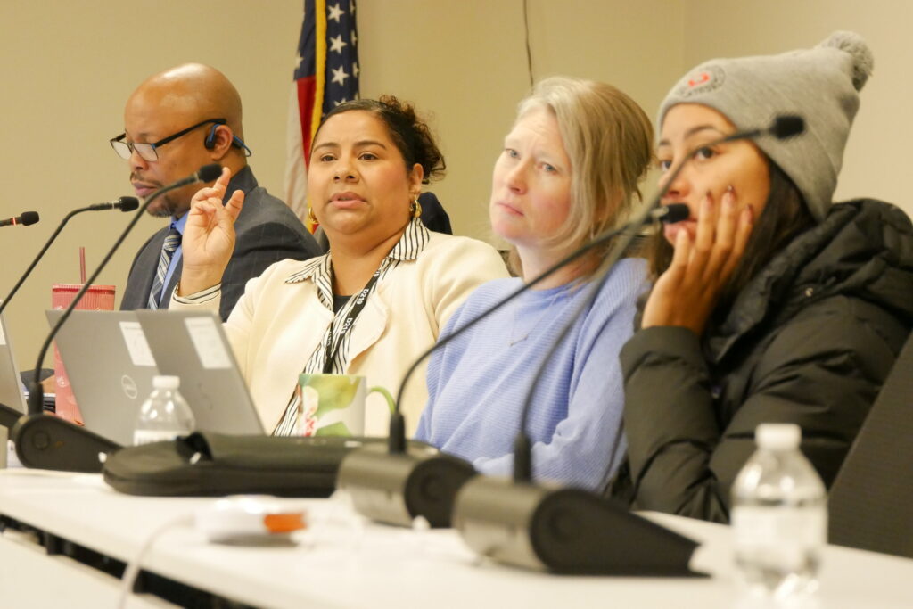D219 Board Members (left to right) Ken Durr, Celia Stennett, Lindley Wisnewski and Kandice Cooley during the meeting on Nov. 12. | Photo by Samuel Lisec/The Record North Shore