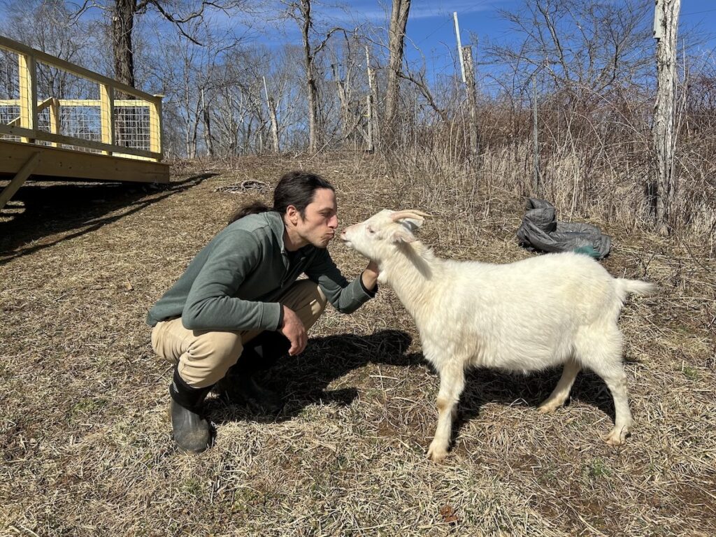 It all began 23 months ago when Little Britches the goat was born to mother Nectar at Spikenard Farm – Honeybee Sanctuary in the Blue Ridge Mountains, where Alex Tuchman serves as director.