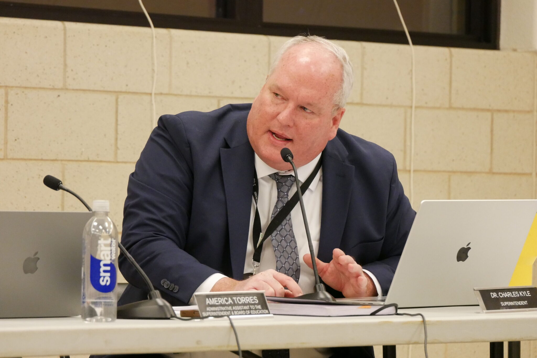 Superintendent Charles Kyle announced during a Feb. 10 meeting that he has reduced his office by two and a half positions and eliminated two other administrative positions for the 2026-’27 school year.