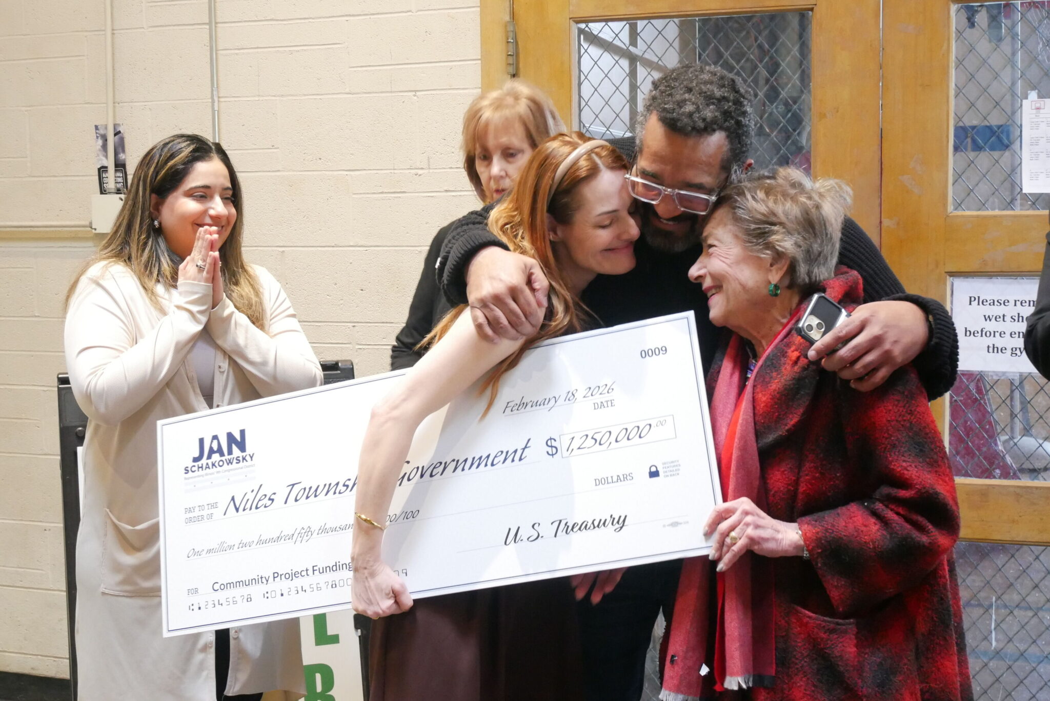 Representatives for the township gathered in the respite center on Feb. 20 to thank U.S. Representative Jan Schakowsky (D-9th) and State Sen. Ram Villivalam (D-8th), who requested the respective funding packages.