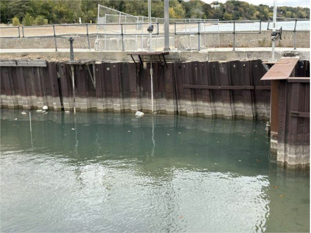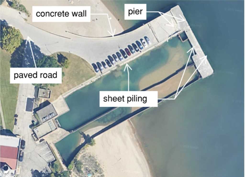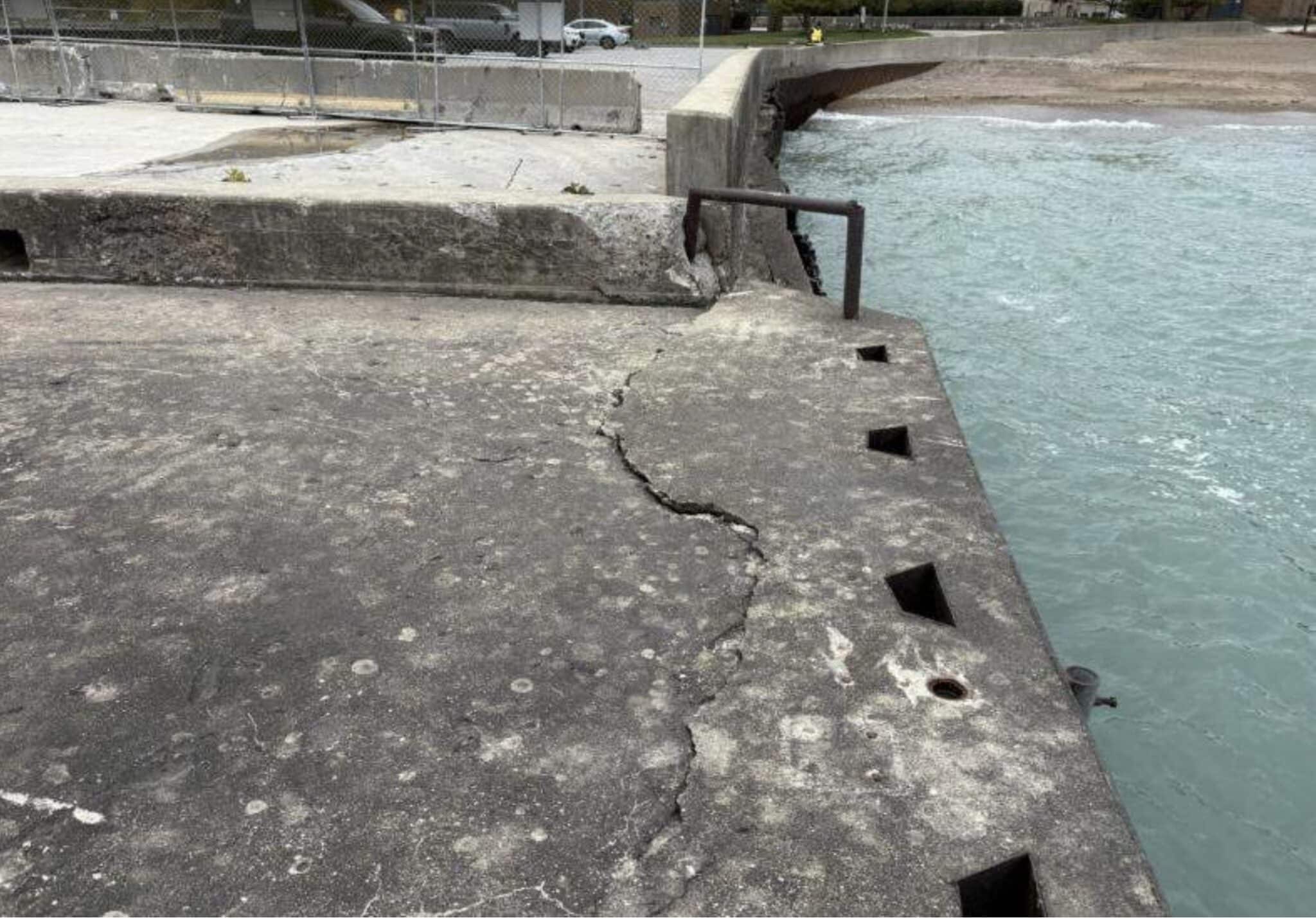 The pier, which is connected to Tower Road Beach and features several parking spots and an overlook, took significant damage in 2020 due to near record-high high lake levels. The pier end, per the village, was closed that same year due to partial collapse of asphalt decking, which Narhi says in his memo was “likely from erosion due to wave action.”