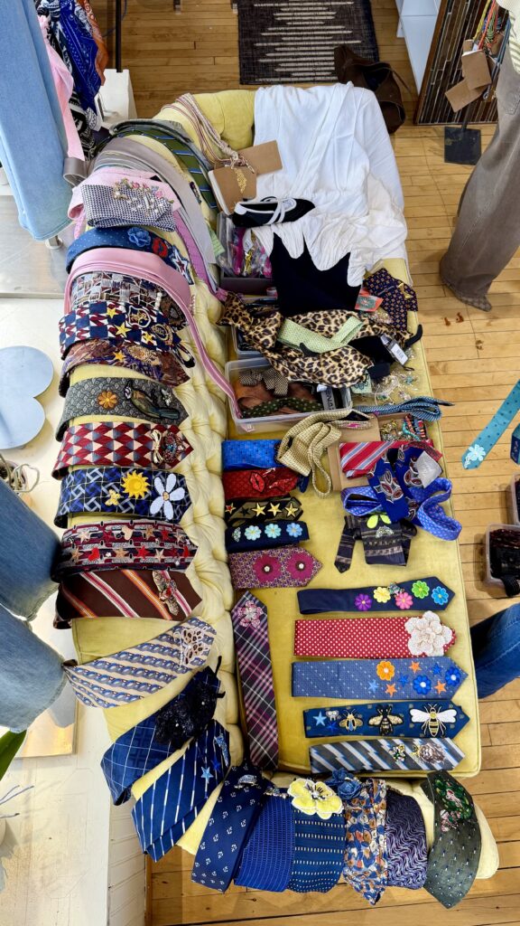 The models will incorporate “up-cycled” vintage men’s ties to make looks appear “more elevated,” Shapiro said. These ties, brooches, chains and patches will come from Pat Norman, a designer with The Pat Touch. Attendees also can create their own ties at a Custom Tie Bar after the show.