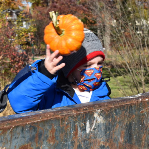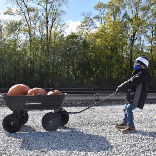 Benjamin Stoelting, 3, of Kenilworth, brings the family pumpkins to the Pumpkin Smash on Sunday, Nov. 1, in Glencoe.
