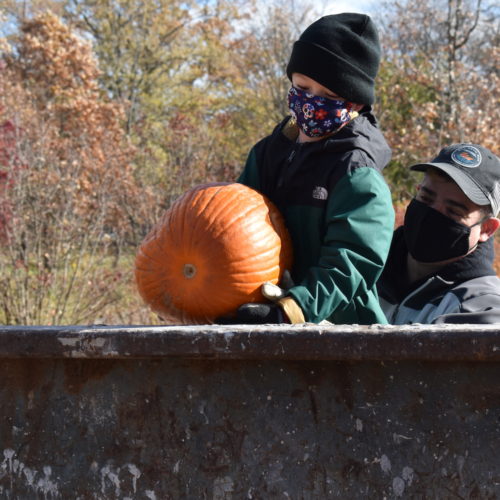 After serving their seasonal duties, pumpkins arrived by the dozens to perform their next calling: feeding the community garden.
