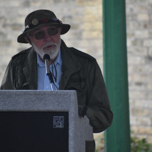 Village President Senta Plunkett shared some words in the event led by the local American Legion and assisted by local Boy Scouts. Guest of honor John Plante, who served in World War II, laid a memorial wreath at the site.