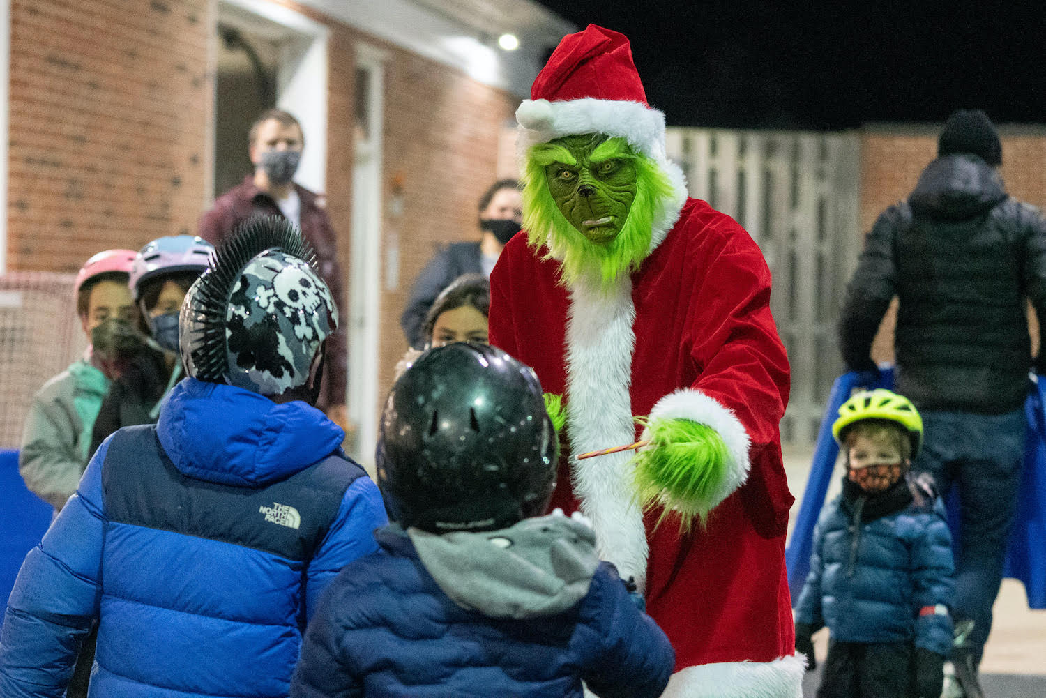 The Grinch stopped by to hang out with ice skaters at Glencoe’s Watts Park on Friday, Dec. 18, during a special event from the Glencoe Park District.