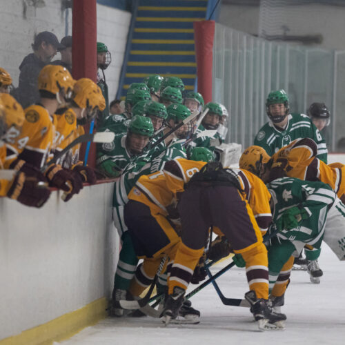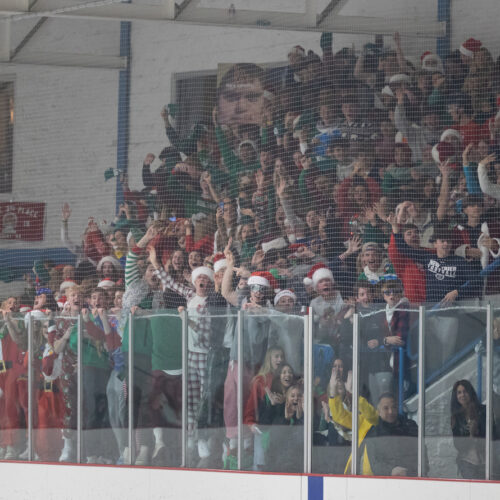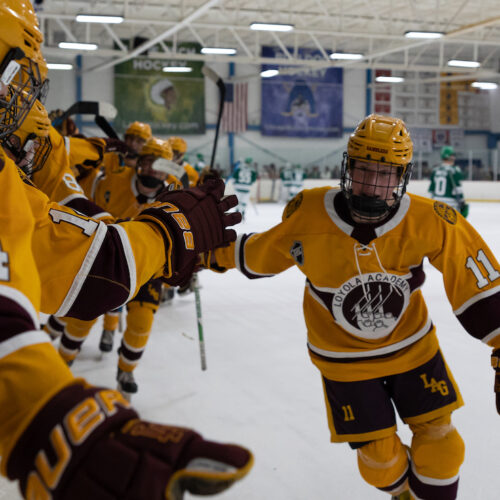 The boys (Dec. 10) and girls (Dec. 11) squads faced off in rivalry games as part of the Blackhawks Rivalry Series. In the boys matchup, Loyola Gold topped New Trier Green 4-1 to avenge an early-season loss to Green.