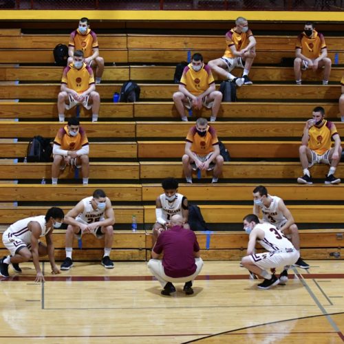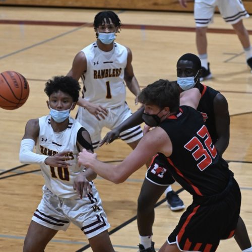 The Loyola Academy boys basketball team returned to action Friday, Feb. 5, against the Maine South Hawks in Wilmette. The Ramblers dropped their season-opening game 47-36, but head coach Tom Livatino and his team were happy to be back on the court.