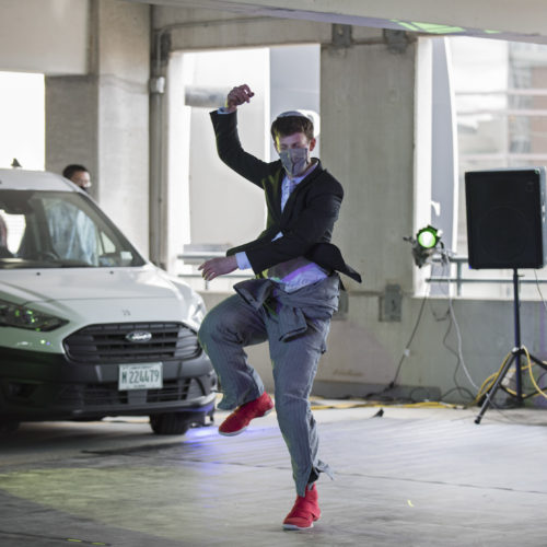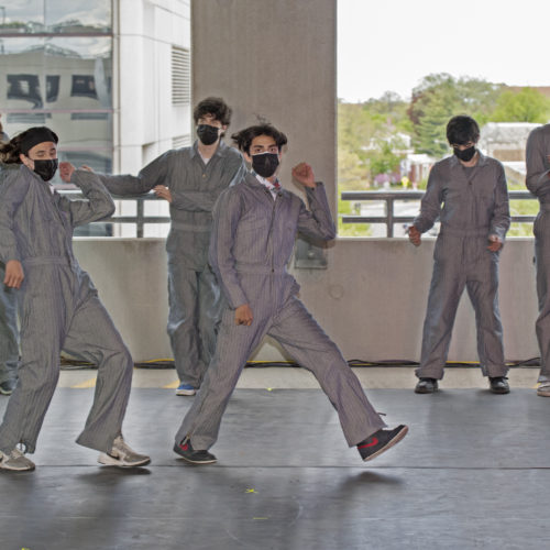 New Trier Menz Dance relocated its annual show on Friday, May 7, from the high school to a parking garage in Evanston due to COVID-19 restrictions.