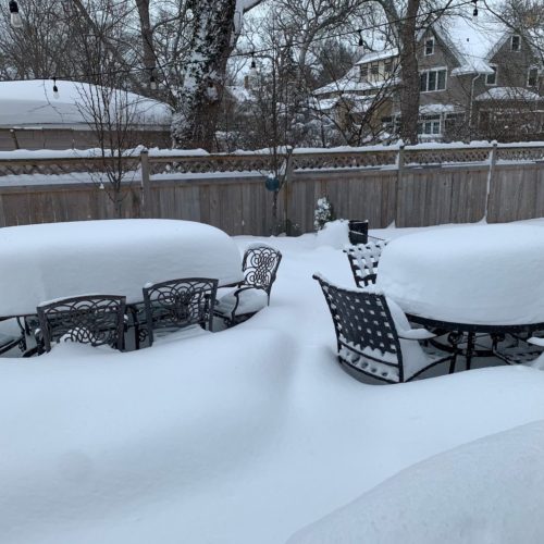 The Village of Glencoe announced it measured between 12-15 inches, as public buildings closed and local schools taught remotely on Tuesday.
