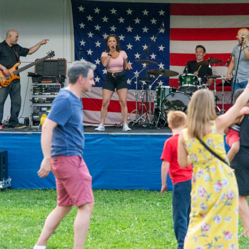 With an American flag backdrop, Final Say performs at Wilmette's Independence Day celebration Saturday, July 3, at Gillson Park.